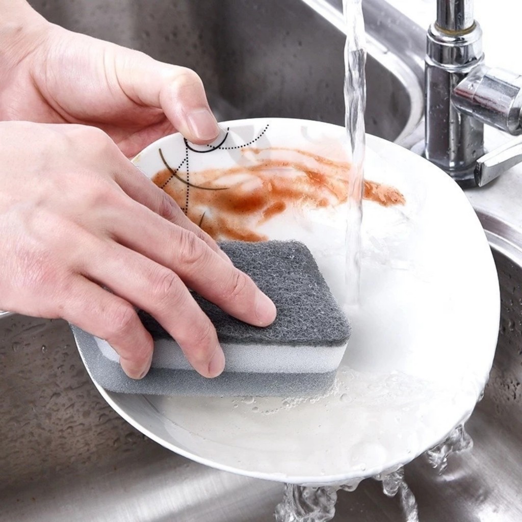 Miếng Xốp Bọt Biển 2 Mặt Ghi Xám, Cọ Rửa Chén Bát Đĩa, Đánh Xoong Nồi Chảo, Sạch Sẽ, Tiện Dụng Nhà Bếp