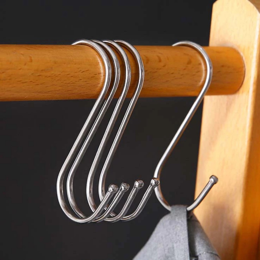 Móc Inox Treo Đồ Hình Chữ S, Móc Inox Không Gỉ Treo Đồ Dùng Bếp Và Phòng Tắm,Treo Hàng Hóa Quần Áo Chịu Lực 15kg