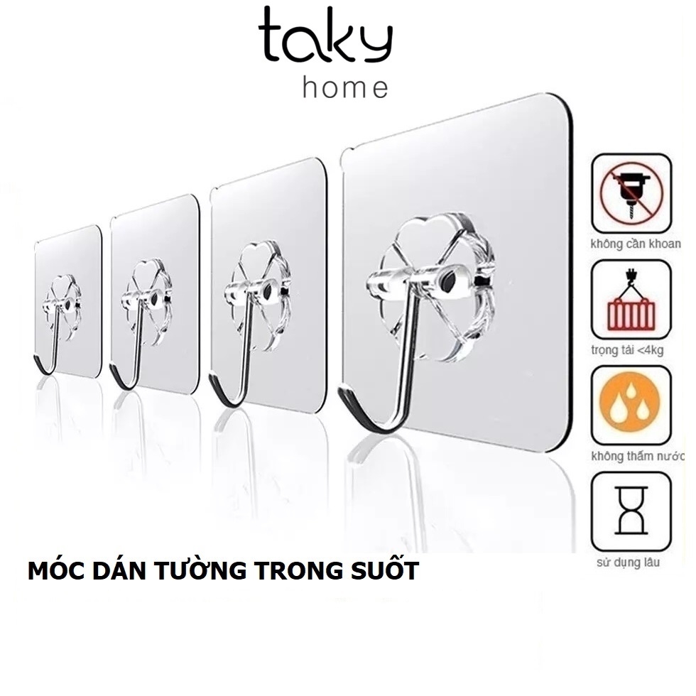 4 Móc Treo Nhựa Trong Suốt Đa Năng Dán Tường Siêu Chắc, TakyHome Móc