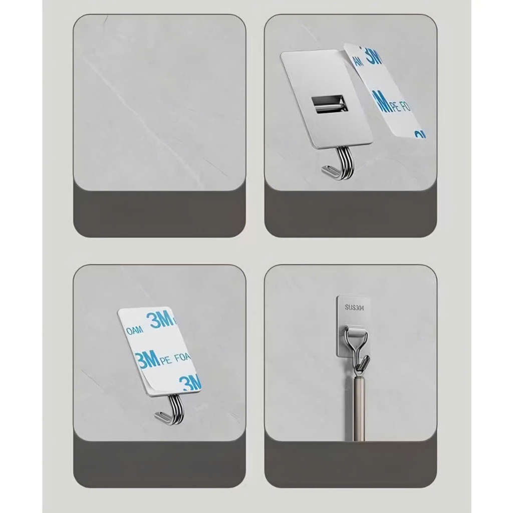 - Móc dán tường sử dụng miếng dán 3M cực chắc chắn, không cần khoan đục.